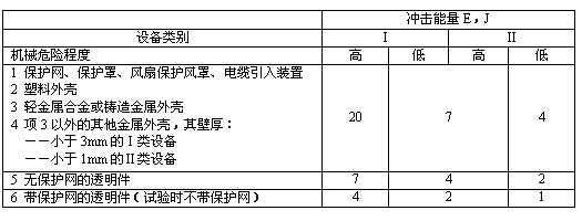 9類電氣設備無保護的透明件,在高機械危險的情況下,沖擊試驗能量從GB3836.1-198310J降為7J;沖擊試驗環境溫度由(25±10修訂為(20±5;