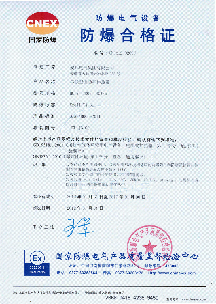 除了這兩種,還有自限溫系列的防爆產品合作證,這里就不一一例舉出來,您需要了解的話,可以直接瀏覽網站的“榮譽資質”板塊。另外,提醒廣大的客戶,伴熱帶廠家很多,但是如何識別是否是正規的廠家,您可以讓對方提供一些資質,如果不放心,您也可以去相關的認證網站查詢。